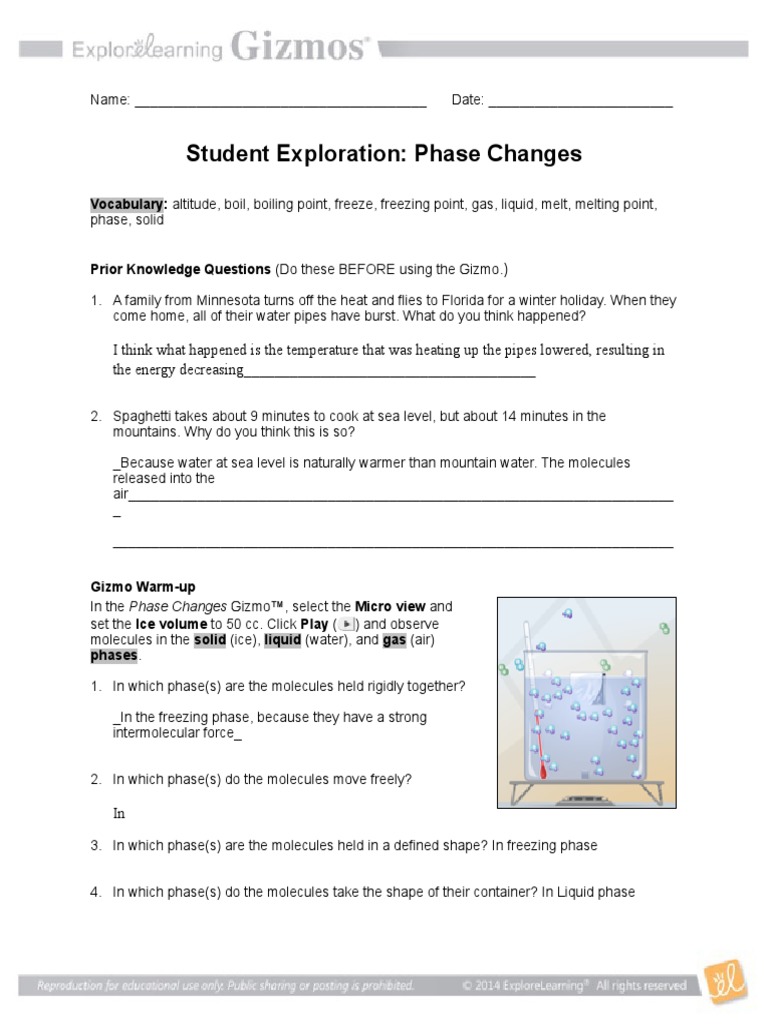 Gizmo Answer Key Phase Changes : In Which Phases Do The Molecules Take The Shape Of Their Container Liquid And Course Hero / click reset () and select macro view.. Change is a good thing when you're a state of matter. A virus is a microscopic particle that can infect a cell. Confirm and place it by clicking on the ✓ symbol and then save the changes. Read online now student exploration disease spread gizmo answer key ebook pdf at our library. This activity requires you to use the cell energy cycle gizmo.